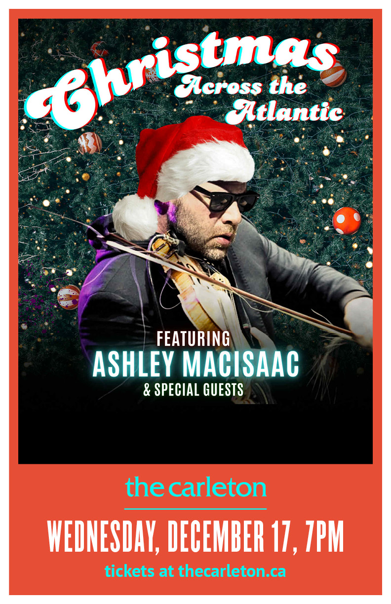 Cape Breton’s Ashley MacIsaac – along with some special guests – brings his Christmas Across The Atlantic show to The Carleton on Wednesday, December 17th. Tickets for this special event are $50 + HST and show time is 7 PM.