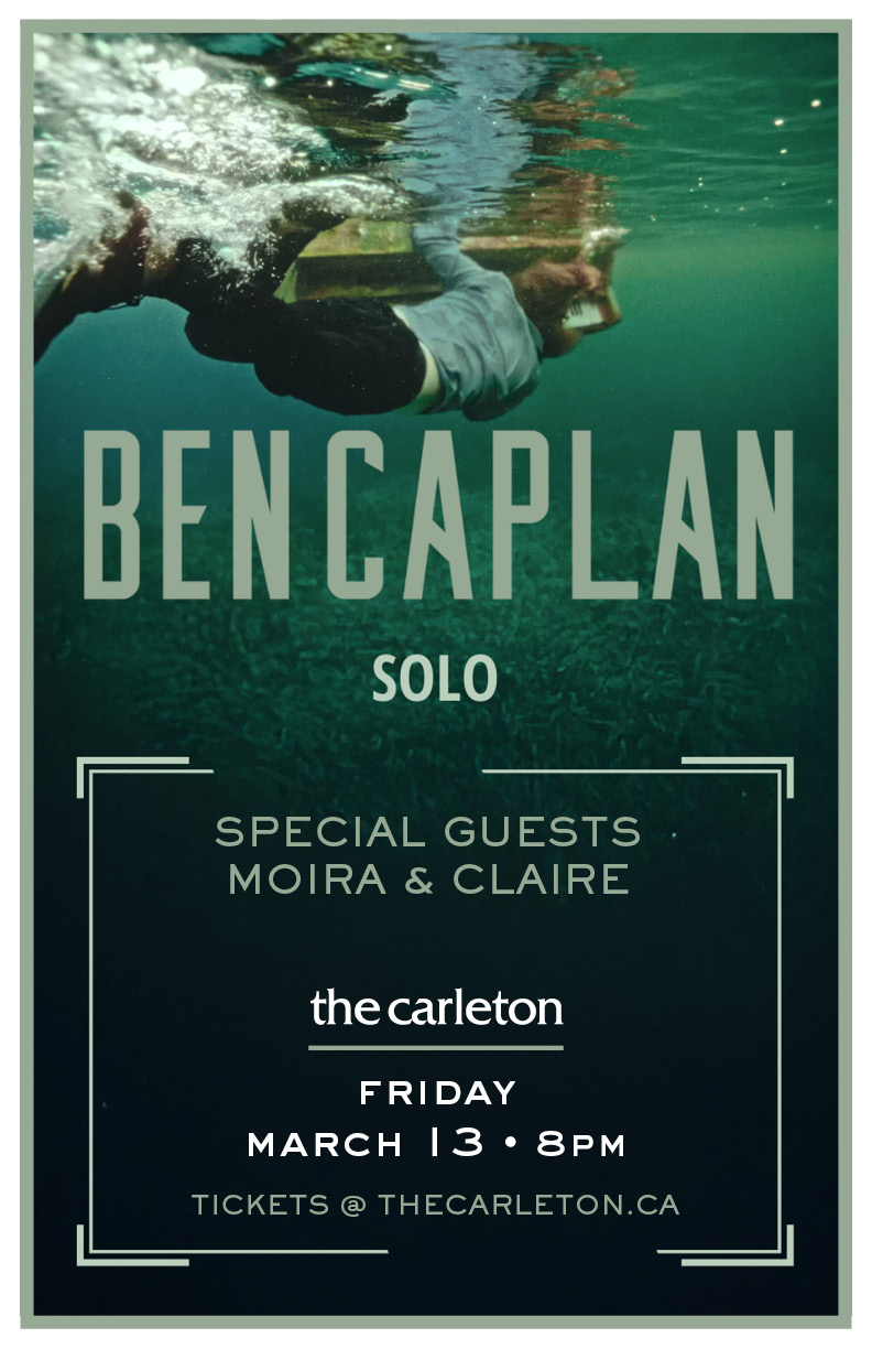 Before heading back out on the road with his band, the inimitable Ben Caplan – along with special guests Moira & Claire – will do two rare intimate solo shows at The Carleton on Friday, March 13th (this one) and Saturday, March 14th. Show time each night is 8 PM and tickets are $50 + HST.