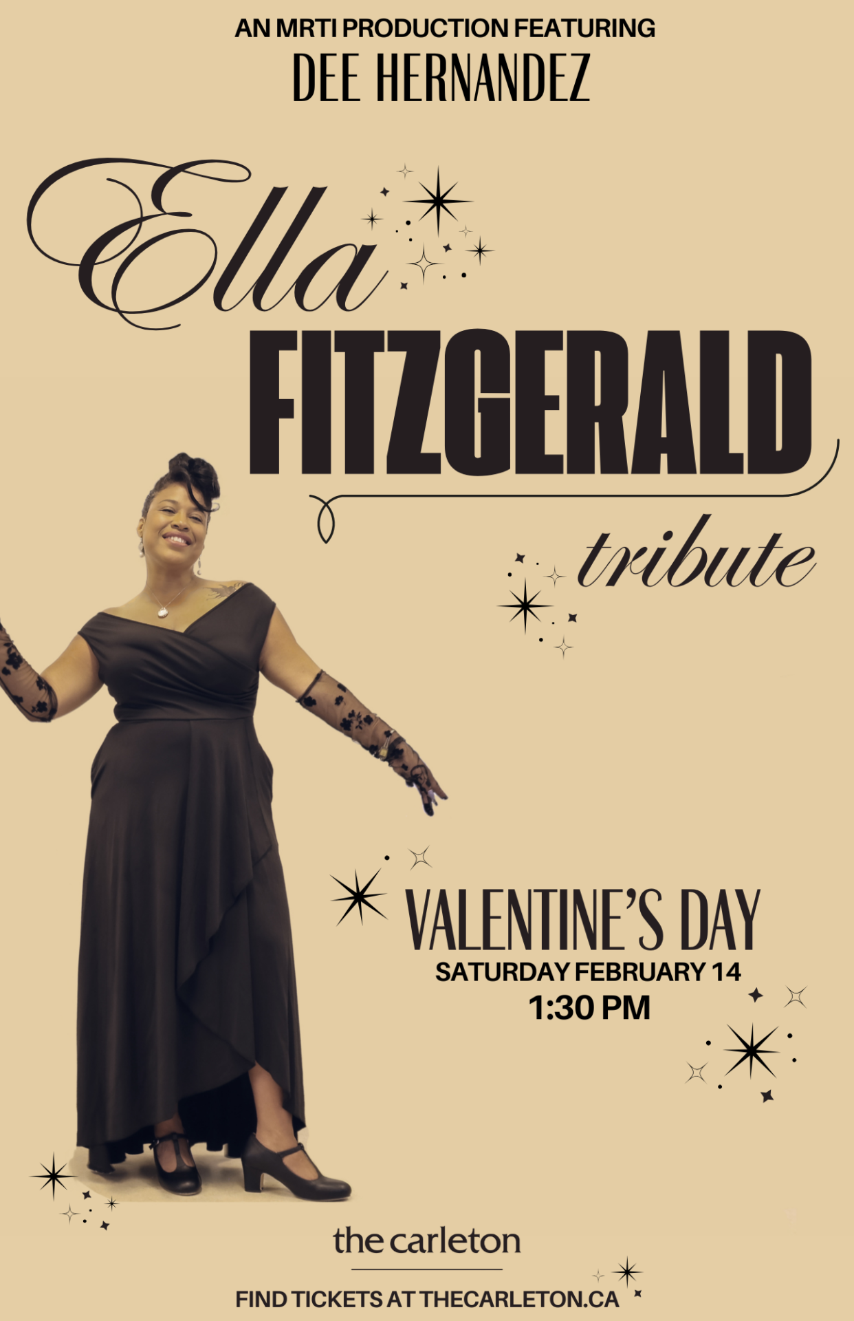 Thanks to the sell-out of her first show, Atlantic Canadian-based Cuban artist Dee Hernandez, adds a second celebration of the legacy of Ella Fitzgerald with a matinée at The Carleton on Valentine’s Day during her Black History Month Tribute Tour on Saturday, February 14th. Doors open at noon with show time at 1:30 PM. Tickets are $30 + HST. This is our kind of dinner & date production!