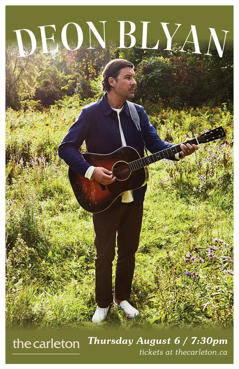 After many years, Torontonian Deon Blyan returns to The Carleton with on Thursday, August 6th for a 2-set night showcasing his brand of songs inspired by the musical foundations laid by the greats of the late 70s. The warm tones filled with hook-laden melodies that Deon has become known for will take shape with the help of a band of local musicians (Luke Levy – Lead Guitar, Calen Kinney – Fiddle, Nick Patterson – Bass Guitar, Jordan Bruleigh – drums, David Campbell from The Ordeals – pedal steel guitar and Sam Fraser – keyboard). Show time is 7:30 PM and tickets are $18 + HST.