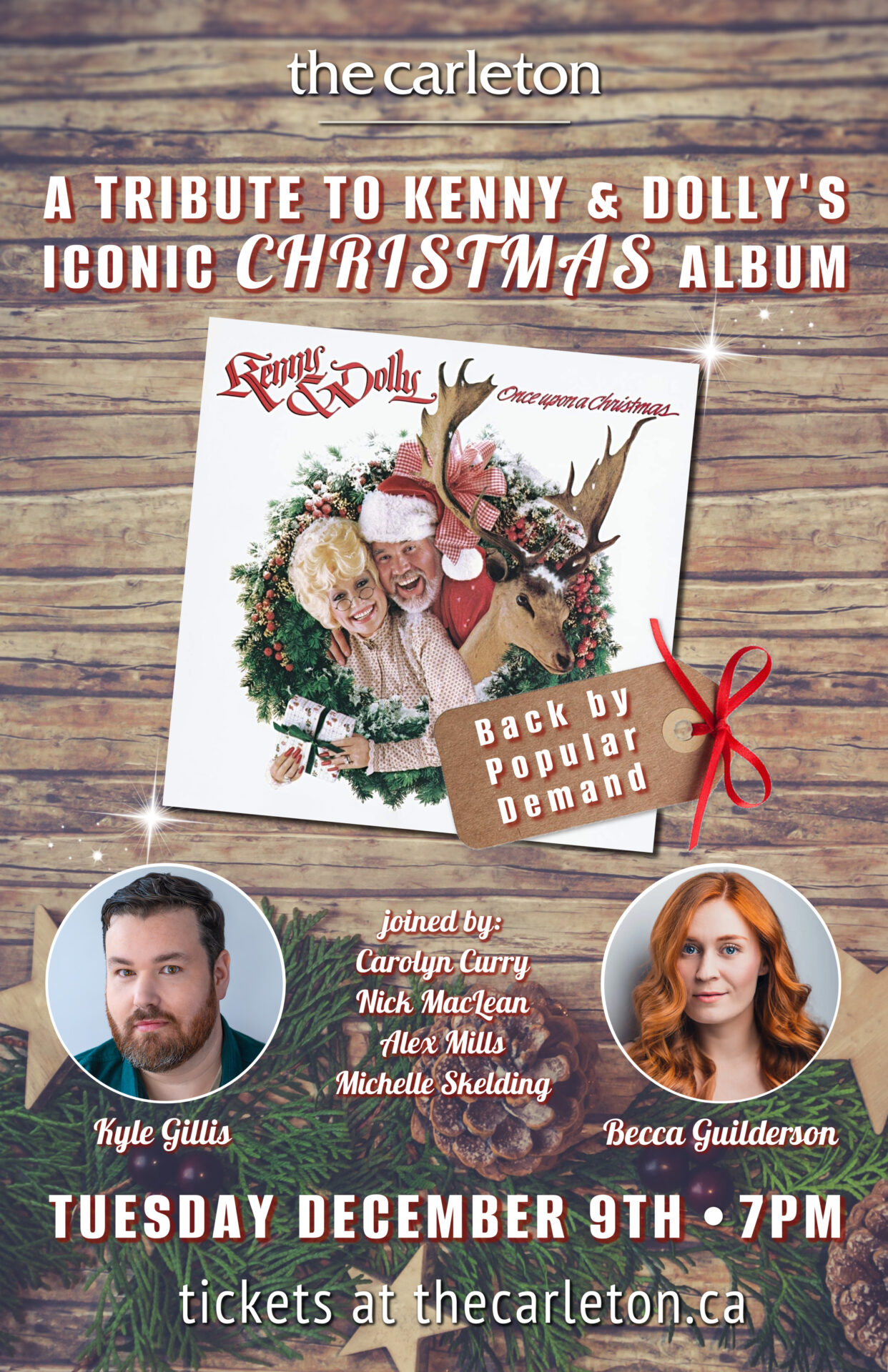 Make this ‘A Christmas to Remember’… Join Kyle Gillis, Becca Guilderson, accompanied by a kickass band, as they present Kenny & Dolly’s iconic, platinum-selling album, “Once Upon A Christmas”. Featuring such songs as “I Believe in Santa Claus,” “With Bells On,” and “Hard Candy Christmas,” this show is the perfect way to get you into the holiday spirit.