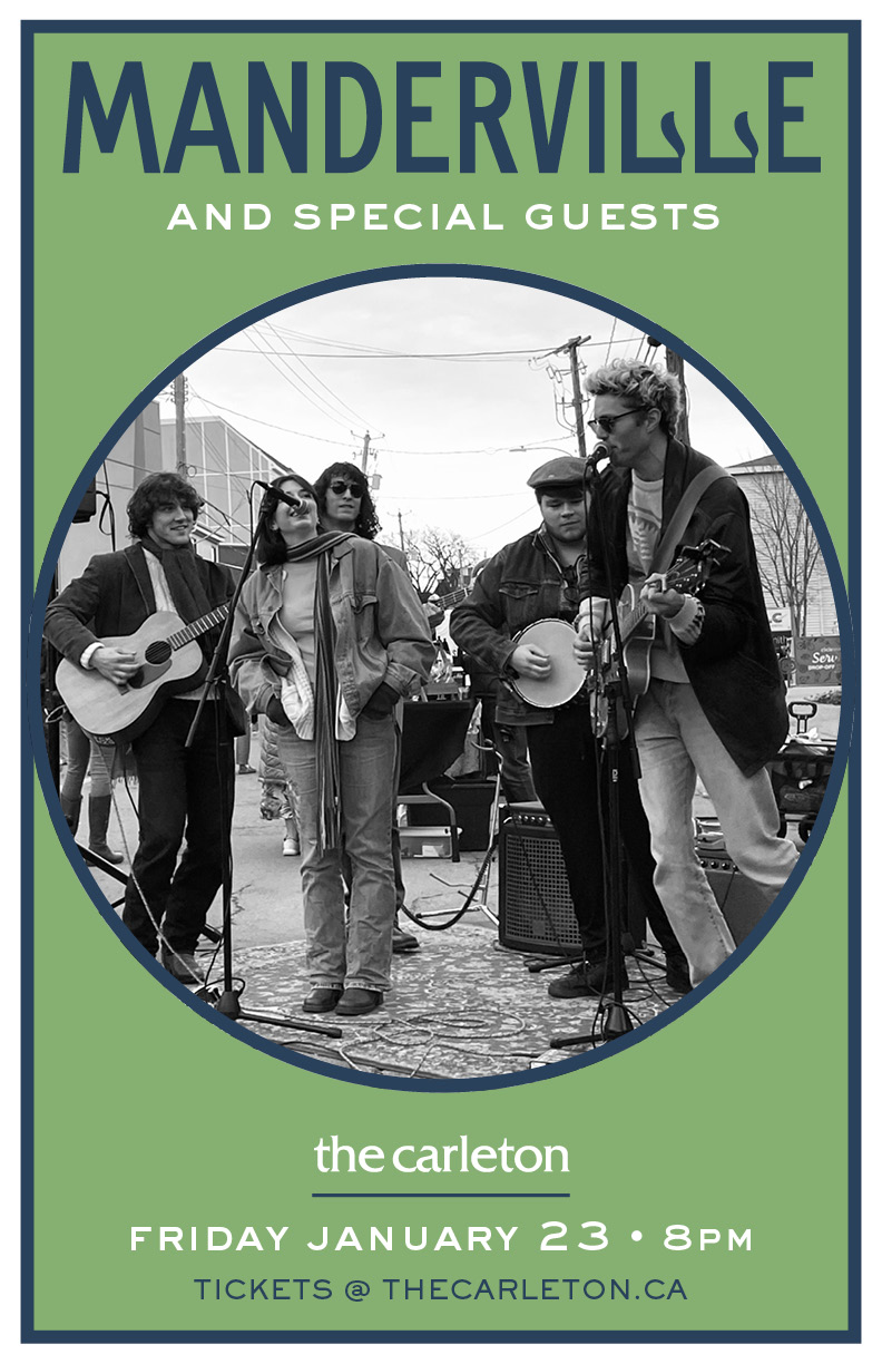 Hot young newcomers Manderville & special guests (TBA) make their Carleton début with a performance on Friday, January 23rd. Show time is 8 PM and admission is a paltry $10 + HST.