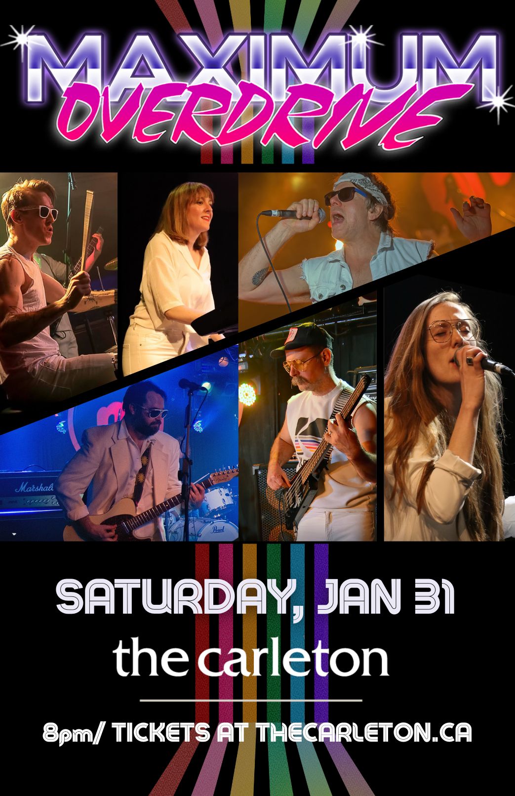 We’re happy to report that Maximum Overdrive will kick off their 2026 season with a show The Carleton so you can work on your best ’80s dance moves on Saturday, January 31st. The time machine will get into gear at 8 PM and tickets are $25 + HST.