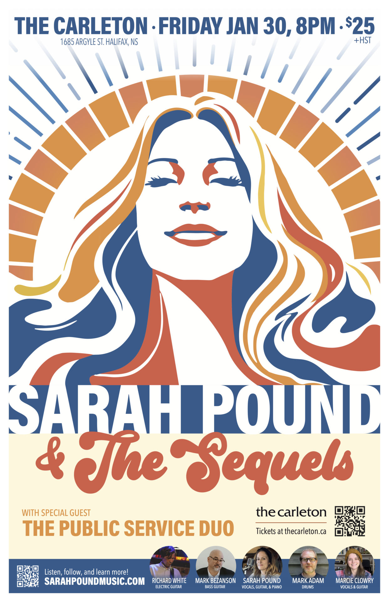 Valley-based band Sarah Pound & The Sequels, along with openers the duo version of The Public Service, make their début at The Carleton on Friday, January 30th. Show time is 8 PM and tickets are $25 + HST.