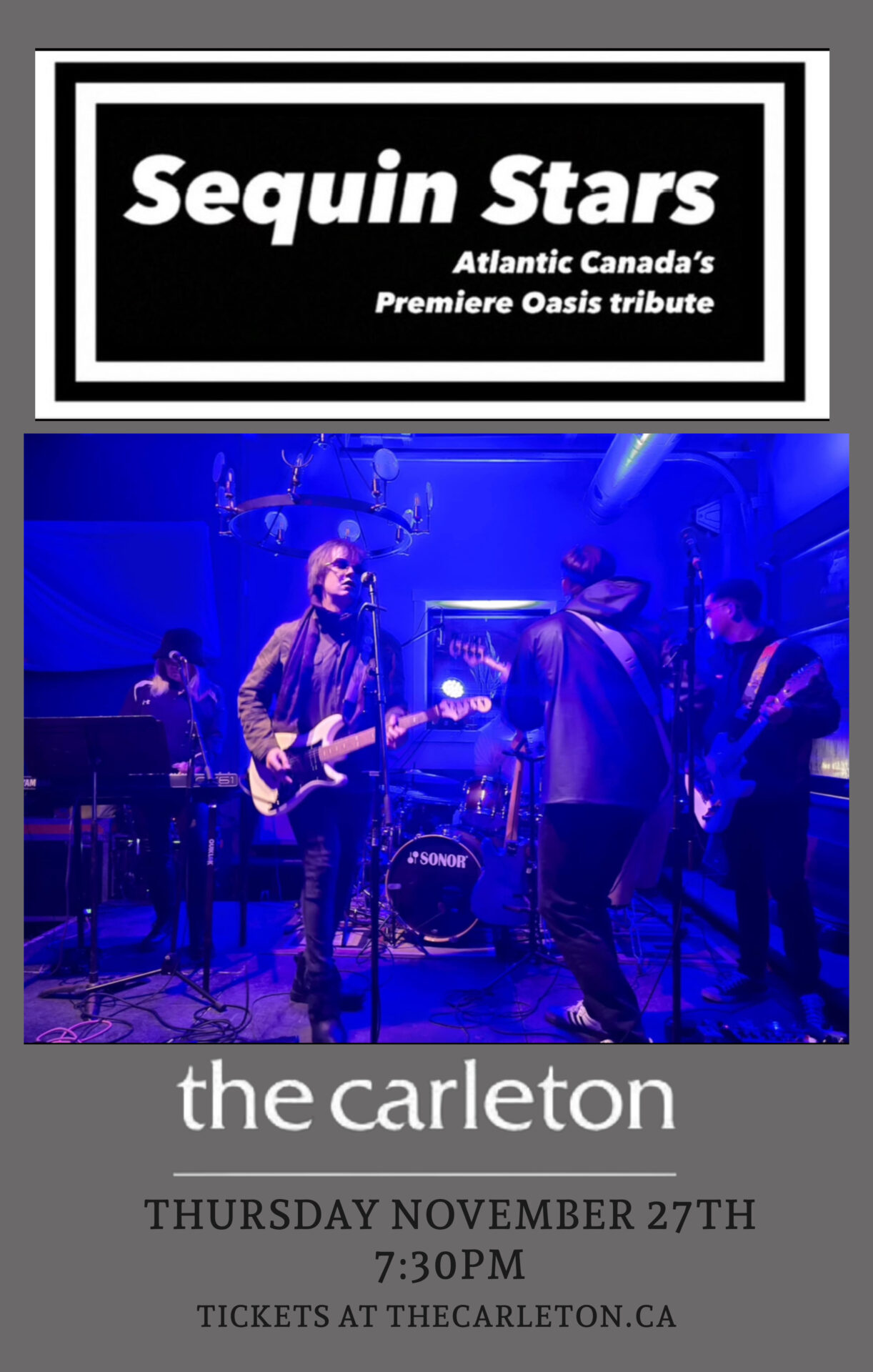 Sequin Stars. Atlantic Canadas Premiere tribute to British rockers Oasis is a passion project created in 2023 by New Brunswick-based songwriter Dillon Ryan. A way to pay tribute to the band that inspired Ryan to become a songwriter many years ago. Sequin Stars bring a high energy, no nonsense Rock & Roll show that celebrates all of Oasis’ original tenure with a focus on the first 2 records Definitely Maybe and What’s The Story (Morning Glory?), two of the biggest and most influential albums in British rock history. The band will take the stage at The Carleton on Thursday, November 27th delivering a set heavily based on the official “Oasis Live 25” reunion setlist.