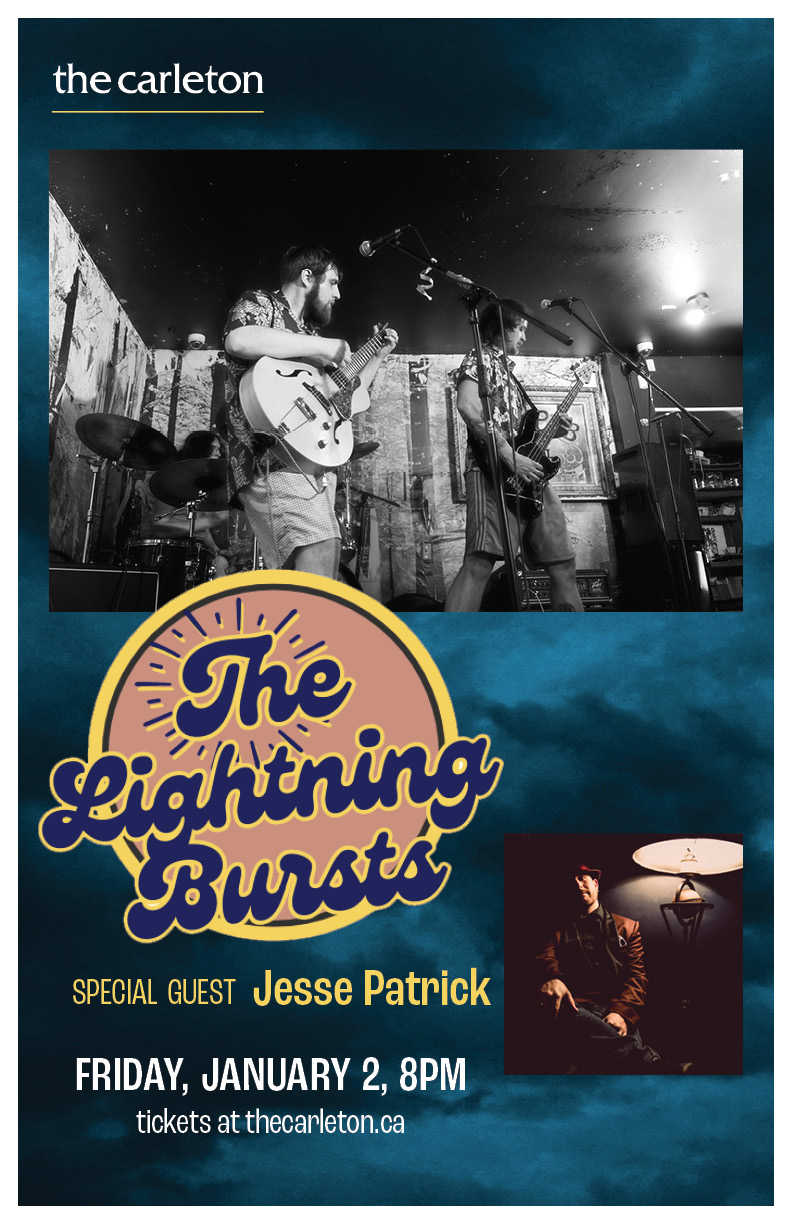 Halifax folk-rockers The Lightning Bursts, along with the always entertauning Jesse Patrick, kick off 2026 at The Carleton on Friday, January 2nd. Show time is 8 PM and tickets are only $15 + HST.
